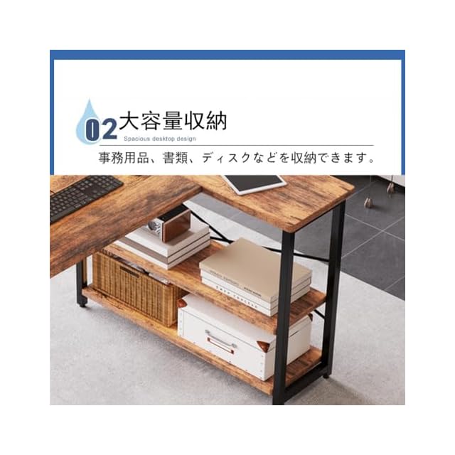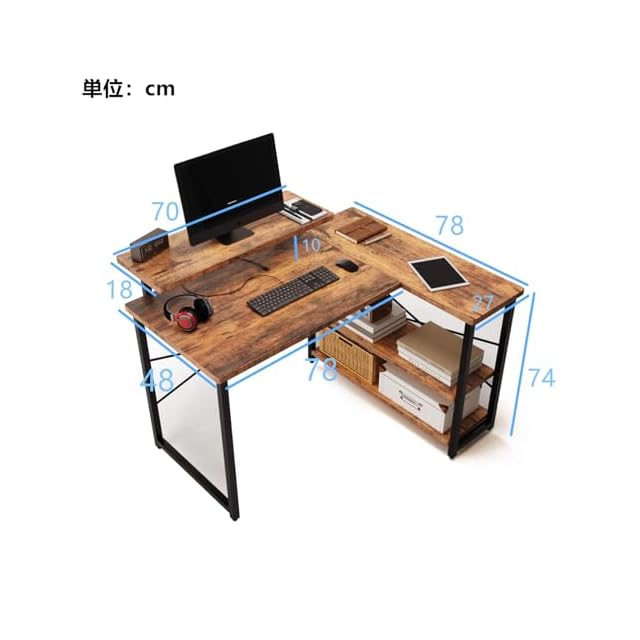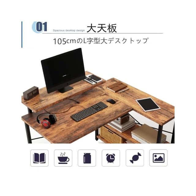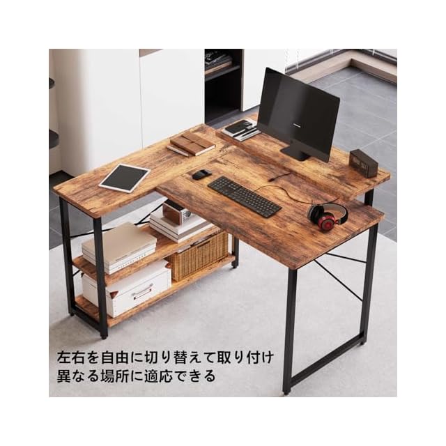 Embrace life パソコンデスク computer desk 机 収納 ゲーミングデスク L字型 リムーバブルラック pcデスク ラック付き コーナーデスク オフィスデスク 在宅勤務 副105cm トラ皮色 | つむぎ屋