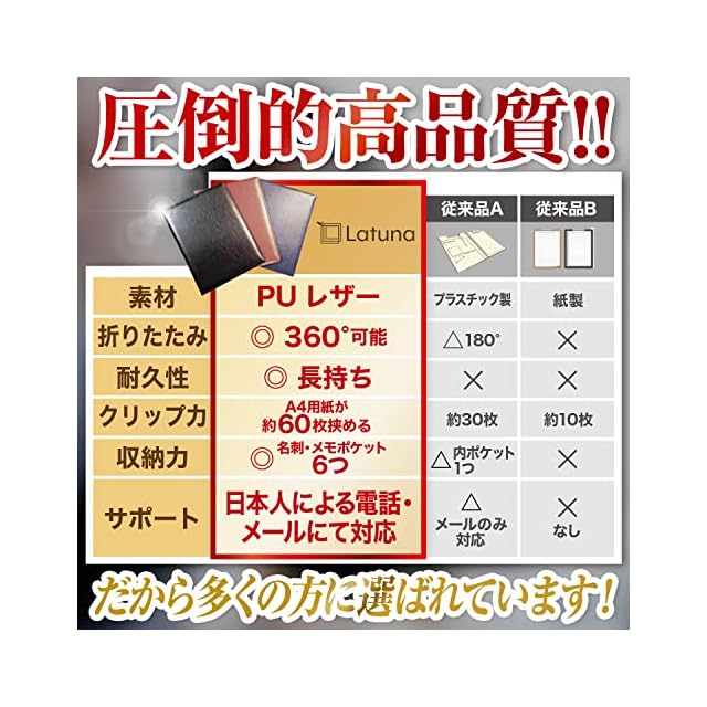 ✅【細部のこだわり&1年】クリップは金属音がしないシックなものを採用。書類を約60枚挟んでも落ちることなく挟むことができる、耐久性のある商品となっております。また、当社製品は1年間のメーカーが付いており、期間内であれば一定の条件下で無料にて返品・交換が可能となっております。