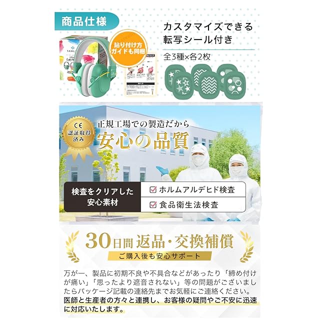 ✅【小児科医監修トリプル安全宣言!】「食品衛生基準法合格」「ホルムアルデヒド合格」「世界基準のEC規格合格」。小児科医監修のもと、目に見えない安心安全にもとことんこだわった子供用イヤーマフです。