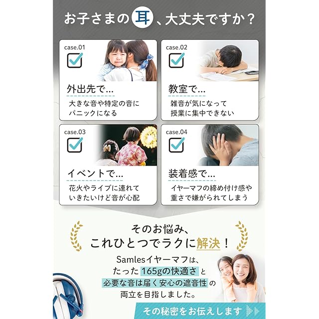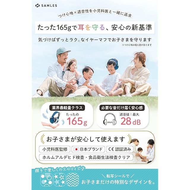 ✅【着け心地と遮音性の両立を実現】を目指して開発しました。小児科医の監修のもと、軽さがもたらす快適な着け心地と、声やアラームなど必要な音は届く遮音性28dBにこだわり開発しました。お子さまが安心して使用できるよう安心安全にもとことんこだわった子供向けイヤーマフです。