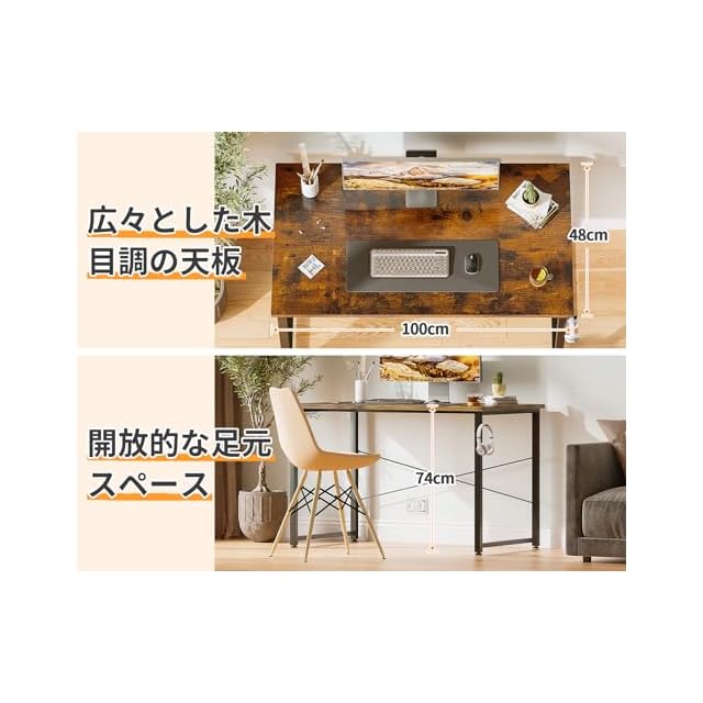 【商品仕様】シンプルでインテリアに馴染むおしゃれなデスクです。◆本体サイズ:幅100×奥行48×高さ74CM | 本体重量:7KG | 日本語組立説明書あり | お客様組立て品で、レンチも付属しており、別途で工具を買う必要がないです。