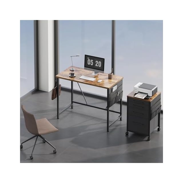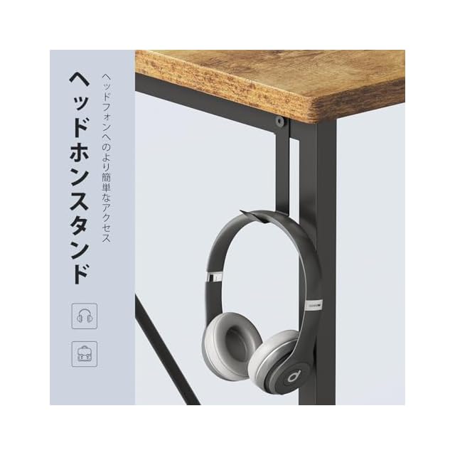 【大きな作業台と収納スペース】机の上は大きいので,パソコンと周辺機器を並べて置くことができ、手元がゆったり使える広さがあります。デスクは丈夫な収納袋とフックが付いておりますので、書類、カバン、ヘッドフォンなどの収納がとても便利になり、天板がすっきり片付けられます。