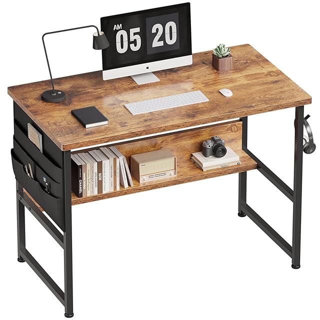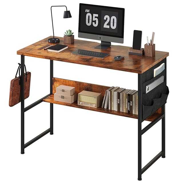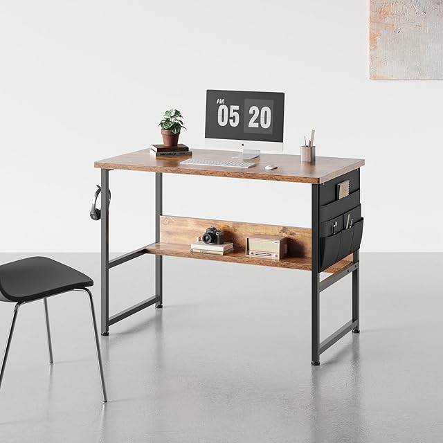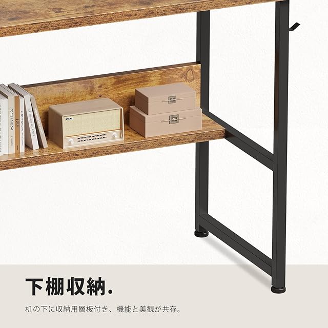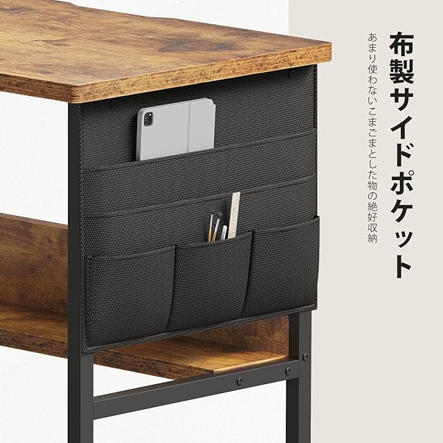 YeTom 机 pcデスク ラック付きデスク パソコンデスク つくえ 幅100cm×奥行50cm 収納袋付き 勉強机 デスク 下棚付きデスク 学習デスク 学習机 省スペース 収納 在宅ワーク デスク 事務机 ビンテージ | つむぎ屋