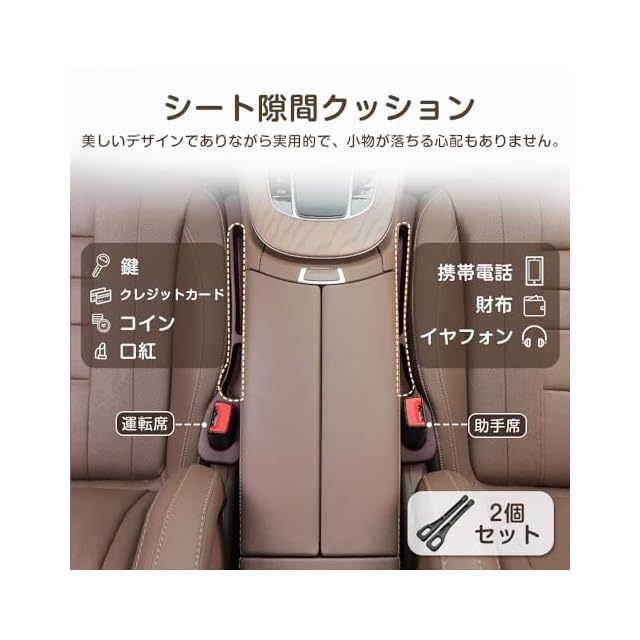 OKUYOSHI 車用シート隙間埋め収納クッション 車 2個入り 隙間収納 カーシートアクセサリー 隙間収納 シートガード 車 クッション シートクッション 隙間クッション 隙間埋め シートサイドポケット 運転席/助手席 多車種対応 ブラウン | つむぎ屋