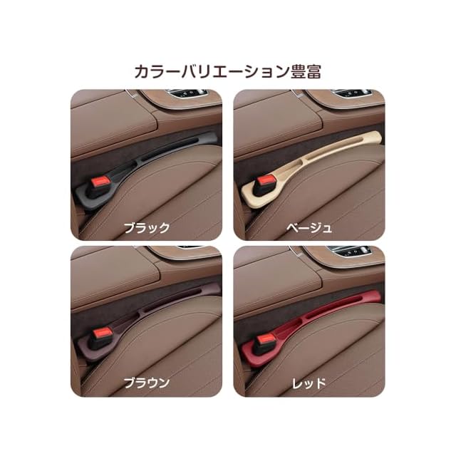 【2個セット & 4色から選べる】運転席と助手席にそれぞれ1個ずつ使用でき、車内がより美しく整頓されます。レッド、ブラック、ブラウン、ベージュの4色からお選びいただけます。お車の色に合わせて最適なカラーをお選びください。シート隙間にぴったりフィットし、車内収納を便利にします。