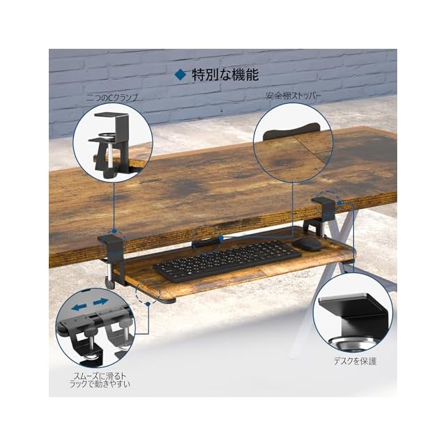 【高耐久性と安全設計】キーボードトレイは高品質な素材で作られており、長期間の使用に耐える頑丈さを持っています。安全ストッパーが付いており、使用中にキーボードが滑り落ちるのを防ぎます。キーボード 台、机拡張としての信頼性を提供します。