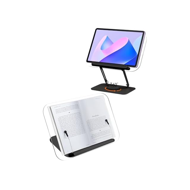 ブックスタンド 卓上 書見台 360°回転 読書台 絵描き用 傾斜台 角度/高さ調整可能 勉強/製図/学習/読書スタンド 折りたたみ式 コンパクト 教科書/楽譜/雑誌/料理本/タブレット/ノートパソコンスタンド 置き 机上スタンド アクリル 透明 (ブラック) | つむぎ屋