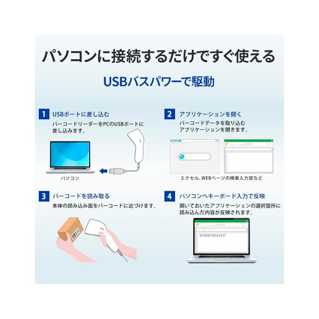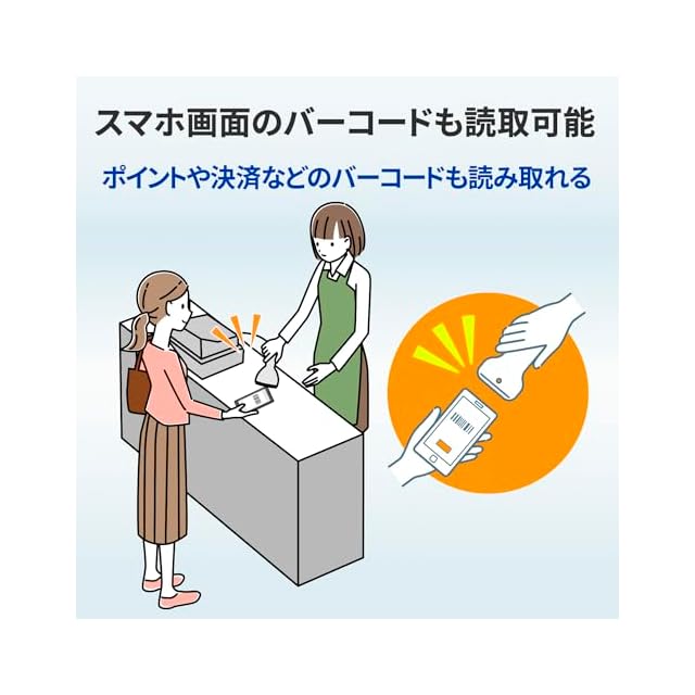 【スマホなど液晶画面のバーコードも読み取り可能】CCD式のバーコードリーダーなので、スマホやタブレットなど液晶画面に表示されているバーコードも読み取り可能です。 ポイントや決済などのバーコードも快適に読み取れます。