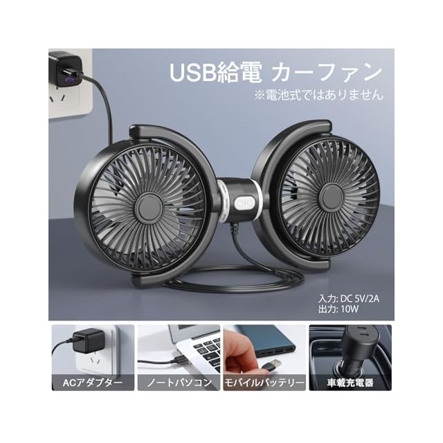 【2025年夏新登場】Trustnice 双頭 車 扇風機 車載扇風機 3段階風量調整 360°角度調節 熱中症対策 車中泊用 USB車載ファン 静音設計 ヘッドレスト 後部座席 車内ファン 取付簡単 延長配線付き 車 テーブル | つむぎ屋