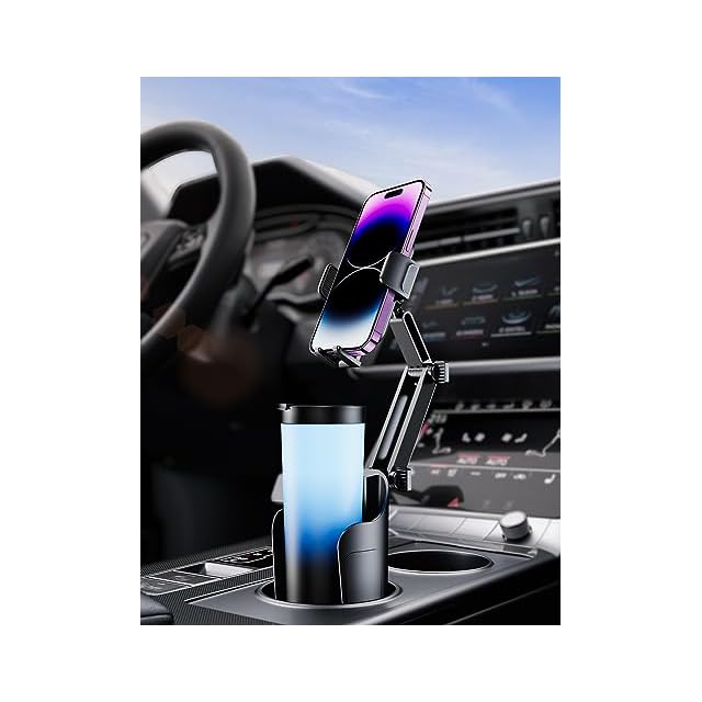 【360°回転+二軸伸縮アーム・運転に絶好の視野角】 このカーカップホルダーは2つのアームが接続されており、2つの調整ノブを通じて、アームが6.3cmから25.4cmまで伸縮調整でき、アームの角度270°自由に変更可能、反転ができ、設置場所によって完璧な視野角と高さを調整可能です。また、スマホの装着部分は縦・横・上下・左右360度回転可能で、運転中のお好みやニーズに合わせて最適な角度に調整できます。電話をするにしても、ナビゲーションをするにしても、音楽を聴くにしても、充電するにしても、手を解放して、安全運転をし、最高の運転体験を提供します。