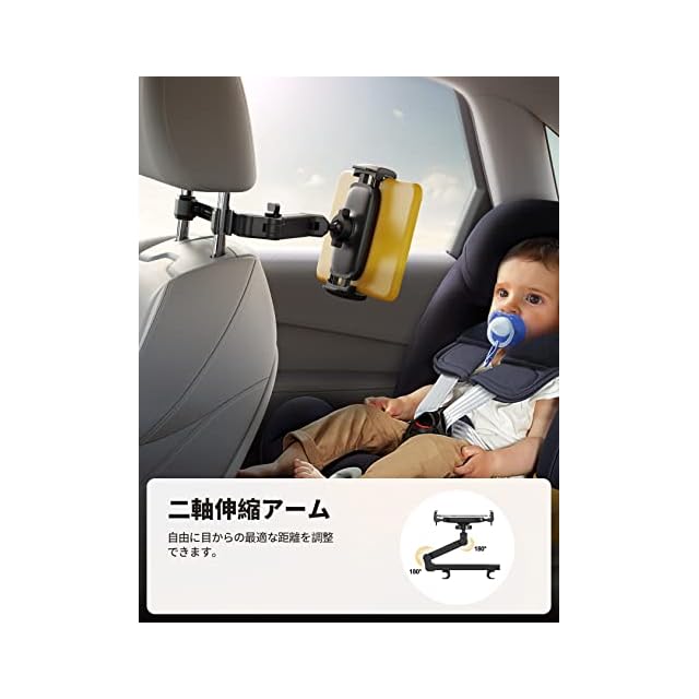 【二軸伸縮アーム】二軸伸縮アームのデザインで、距離制限なし、自由に目からの最適な距離を調整できます。長時間のドライブでも子供も騒がないで遊ん出来ています。目に優しい設計で子供の視力にも保護できます。