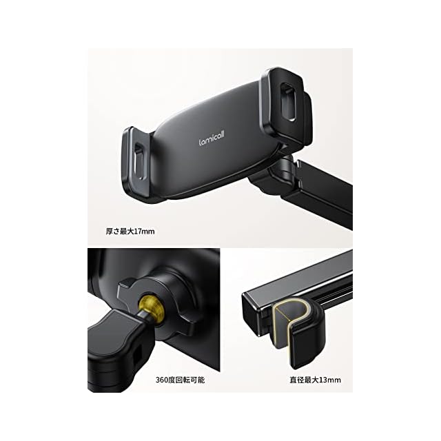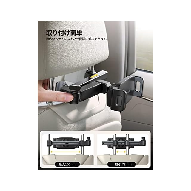 Lamicall 伸縮アーム 後部座席 タブレット ホルダー : ヘッドレスト ipad 車載ホルダー スタンド, バーの適用幅範囲72mm-153mm, ipad 10 第十世代, ipad pro, mini, Air, android, 4.7-11インチのスマホ, タブレット に対応 - 黒 | つむぎ屋