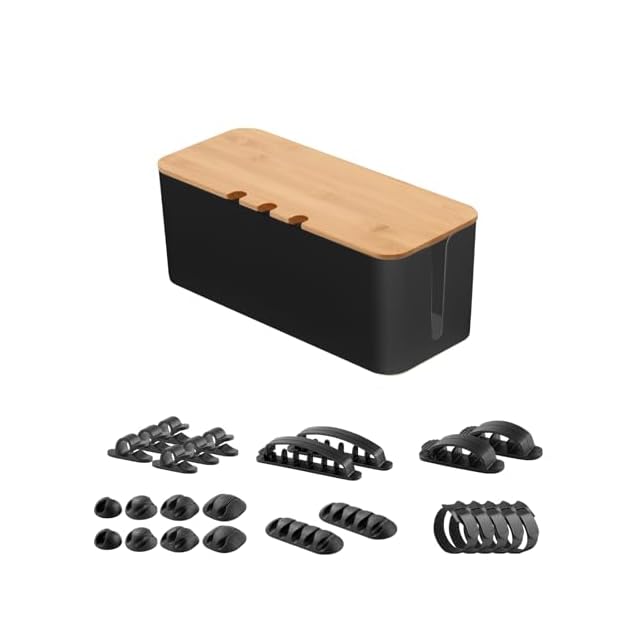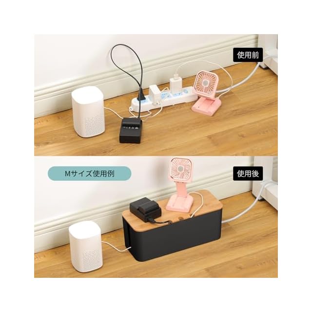 【商品詳細】材質:プラスチック&天然竹製 寸法:S (23.5x11.5x12cm)M (32x13.5x12.5cm)L (40x15.5x13.5cm) バッケージ:Mサイズのコードケース*1、ケーブル収束バンド*5、コードクリップ*20点(最大直径約7mmの各種ケーブルやコードに対応できます。)※サイズの誤差は多少発生します。ご了承下さい。