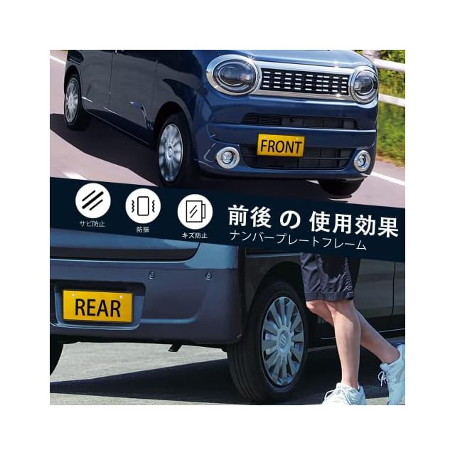 AX2V ナンバーフレーム 2枚付き フロント リア セット 新法規対応 車検対応 振動騒音削減 普通車 軽自動車に適用 ナンバープレートフレーム ナンバープレートカバー 黒色