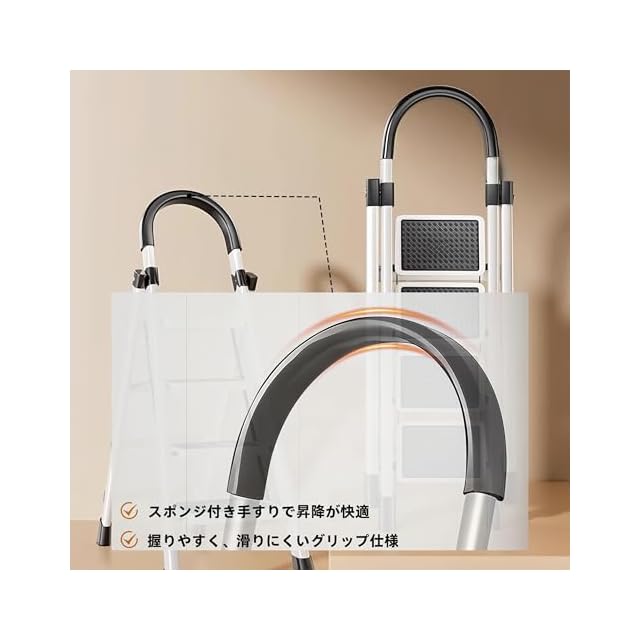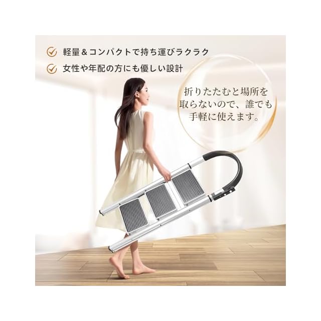 折りたたみ機能:コンパクトに収納できる折りたたみ式で、使用後の保管が簡単です。握りやすいハンドルで、片手でも楽々移動。高い所の作業も疲れにくい。