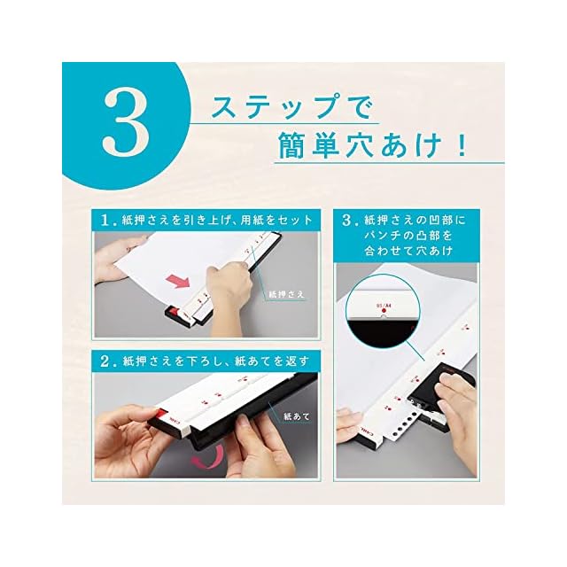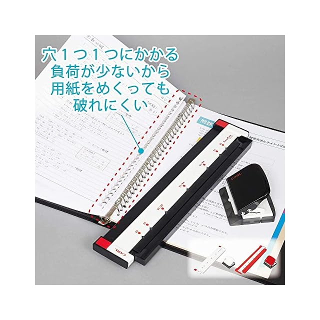 学校や塾で配布されたプリント・テキストを簡単にルーズリーフ化できるパンチ。書類の整理整頓に最適。