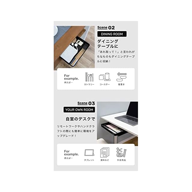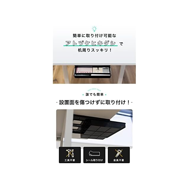 【隙間・スペース活用】デスク、テーブル、机下など様々な場所に設置可能な後付け引き出し、スペースを有効活用!