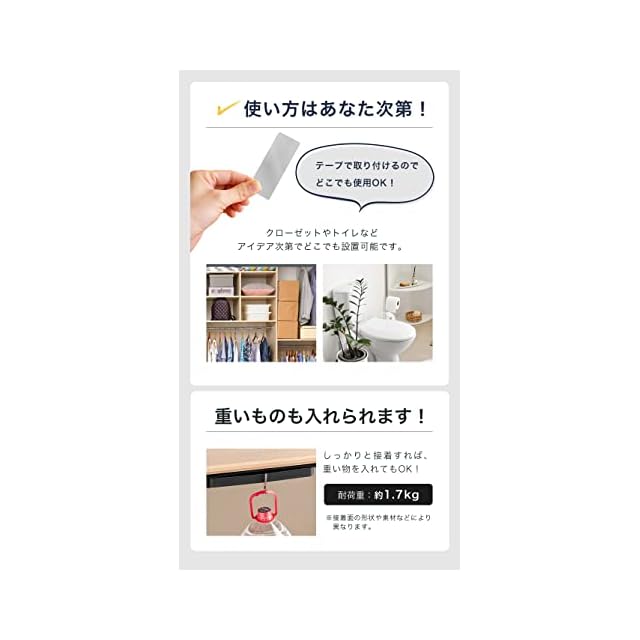 【重量】約475g【耐荷重】約1.7㎏【素材】ABS樹脂【付属品】強力接着テープ