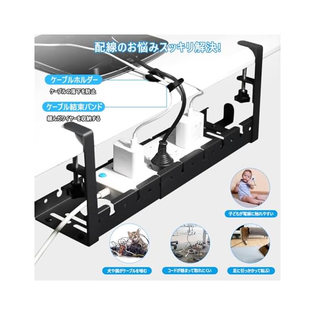 【耐久性抜群の高品質、安全性が高い】ホコリが溜まりにくい穴模様のデザイン、優れた通気性はコードの発熱はしにくいです。配線 整理することで、転倒やケーブルによる事故を防止することができます。また、火災の危険性も減らすことができます。弊社のケーブルラックは防水、錆防止の頑丈な炭素鋼を採用し、ケーブル収納ボックスの表面には防水性の塗装加工を施しており、頑丈で耐久性が優れています。それに、大容量で、たくさんの物を収納でき、荷重性能が良くて、落下する心配がありません。