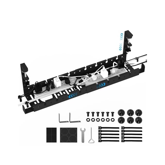 VerkTop ケーブルトレー デスク 収納 配線隠し デスク下 収納 伸縮 幅28.5-55CM 耐荷重20KG ケーブルオーガナイザー ケーブルトレー デスク下 穴あけ不要 ケーブル 収納 ケーブルラック デスク下収納 天板0.5〜5.5cm設置 防錆炭素鋼 ケーブル収納 デスク 配線 ルーター 収納 コード隠し 配線 整理 デスク下 配線収納 机の下 収納 取付簡単 日本語取扱説明書付き 黒 | つむぎ屋