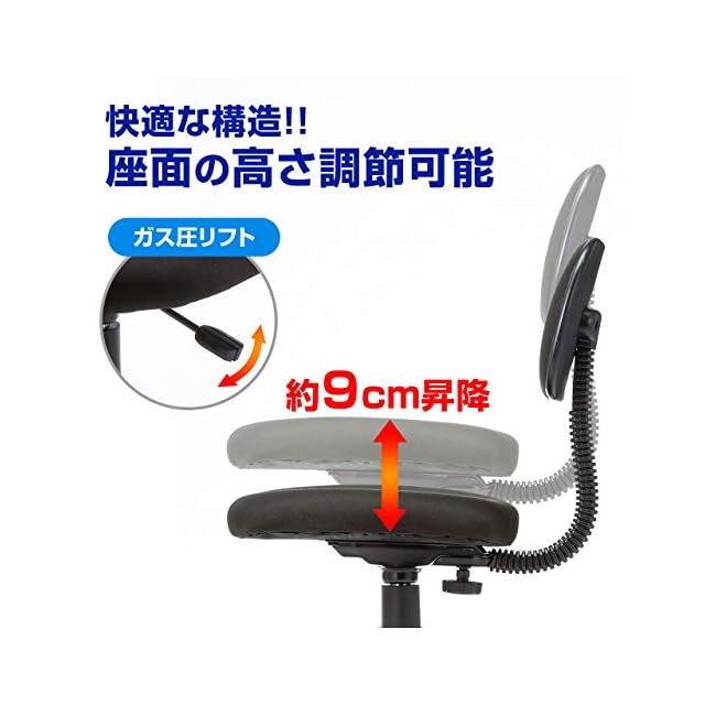 【背もたれサイズ】: W390×H220mm【座面サイズ(座面調節)】: W420×D400×H420~510mm