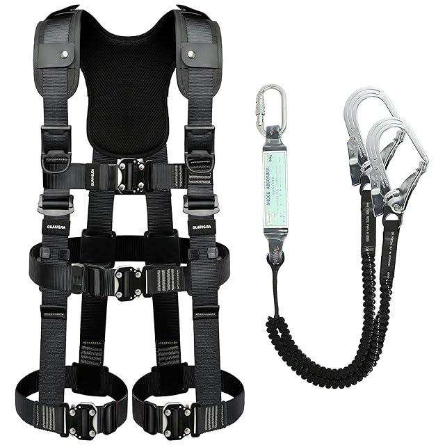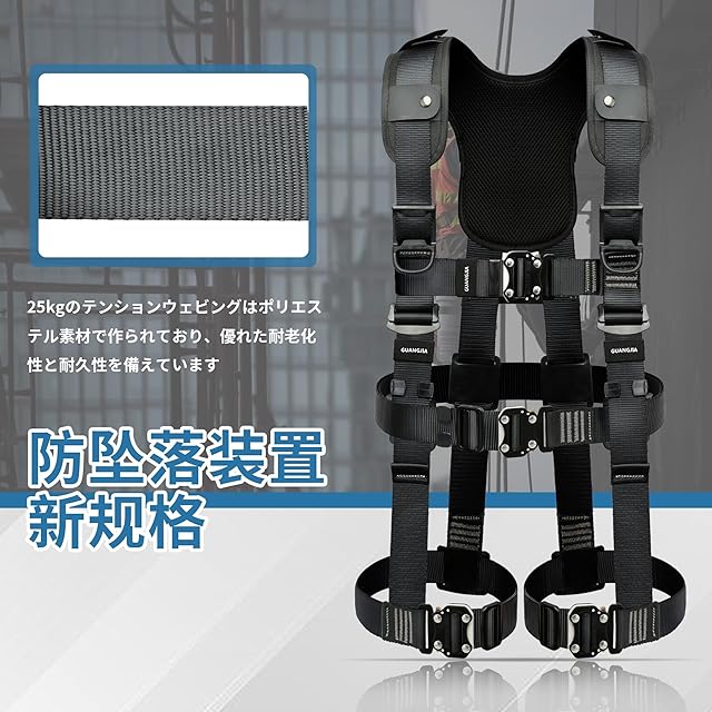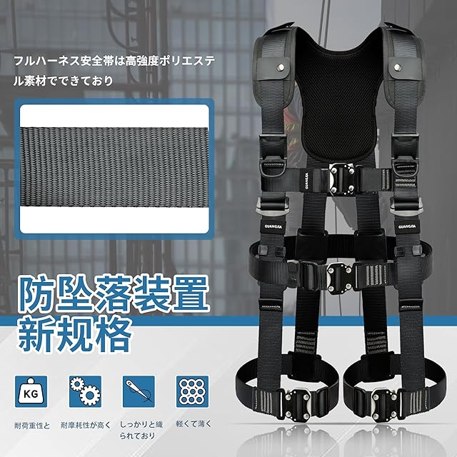 [GUANGJIA] フルハーネス安全帯 新規格 セット 墜落制止用器具 ランヤード一体型 落下防止全身保護キット、全身反射 安全保護 デュアルハーネス脱着簡単 ハーネス安全帯 建設工学、高安全作業 | つむぎ屋