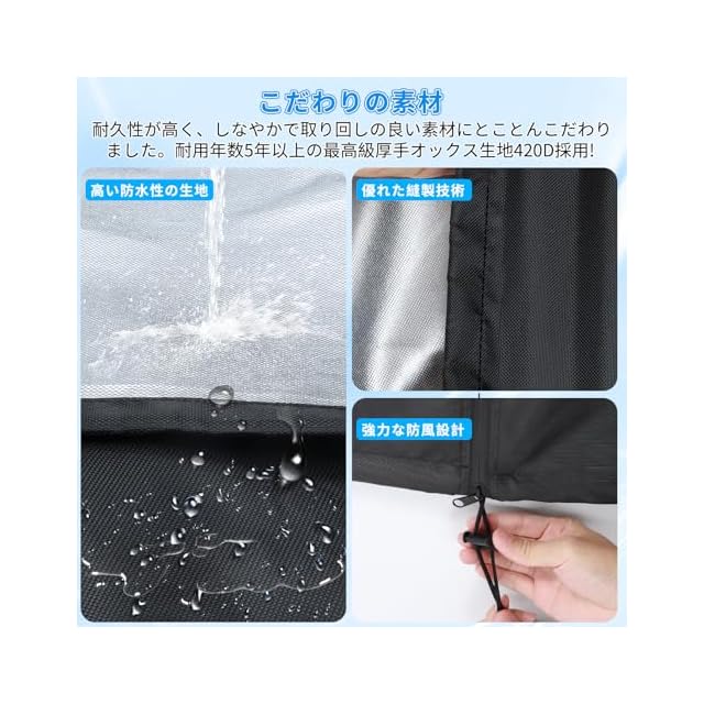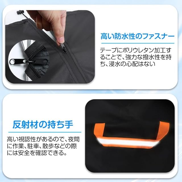 【防水性抜群&強防風設計】耐水圧10000paの防水性を持ちるタイヤ屋外カバーは、止水ファスナーと精密な二重縫い目加工で水の侵入を防ぎ、長期間使用しても破れづらいです。雨上がりや梅雨時期でもタイヤを乾燥した状態に保ちます。また、タイヤ保管袋の下部にコードとストッパーを装備し、調節可能でタイヤにぴったりフィット。強風でもズレにくく、しっかり固定されるので心配がありません。