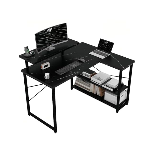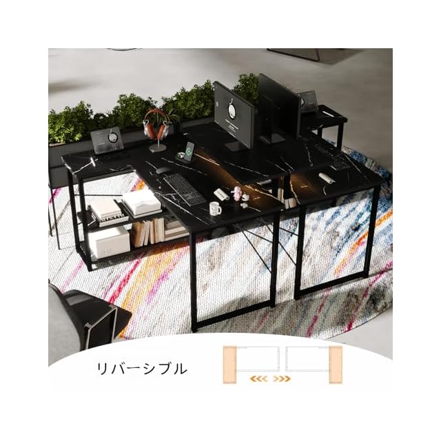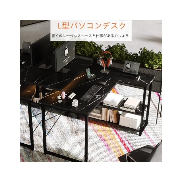 Merytes 机 パソコンデスク 学習机 勉強机 computer desk ゲーミングデスクワークデスクL字デスク 棚 付き pc 省スペース 組立簡単 pcデスク