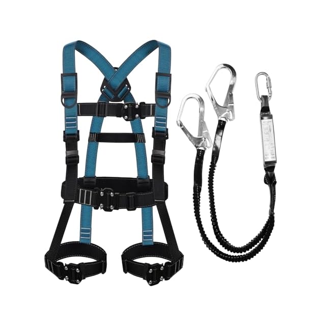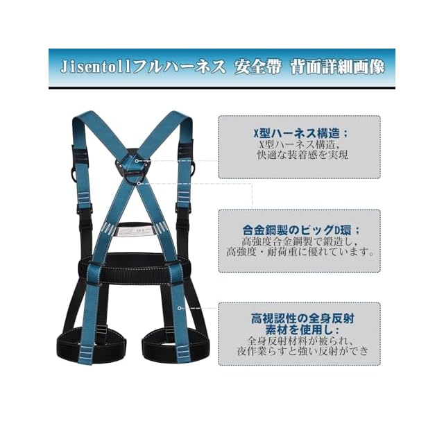 [Jisentoll] フルハーネス安全帯 新規格 セット 脱着簡単 全身反射 安全保護 ワンタッチ バックル腹部と胸と脚ワンタッチバックル 便利 安全 水平型腿ベルト 伸縮式 ダブルランヤード ハーネス 安全帯 新規格 墜落制止用器具 高所作業用 日本語説明書 使用可能質量 100kg (ブルー) | つむぎ屋
