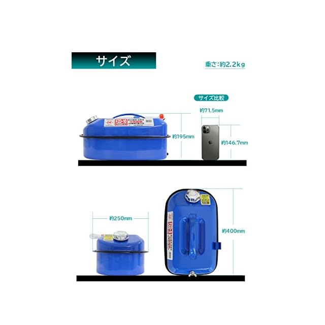 容量:10L 本体色:ブルー 鋼板の厚み:0.8㎜ 塗装:粉体塗装 付属品:油種識別シール