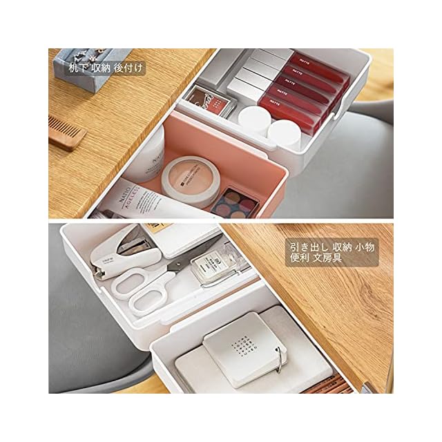 【スペース活用&大容量】テーブルや棚下の隙間やデッドスペースが活用できる取付式引出しです。デスクや机下に隠せるタイプとなっておりますので、デスク収納空間を広げます。