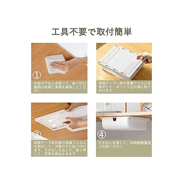 【設置簡単】レジ不要、強力な粘着テープ付け、設置場所に張り付けるだけでしっかり固定できます。貼り付け前に、テーブル下をきれいに清潔してください。*貼り付け24時間後、ご使用ください。