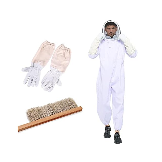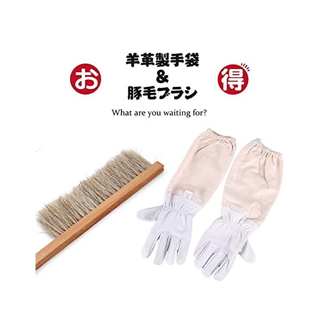 【豊かなツール付き】■手袋 手袋は革製なので手に馴染みます。腕部分は綿です。■ブラシ やわらかい毛を使用し、ミツバチにやさしい、ハチミツとハチミツを分離するために使用されます。