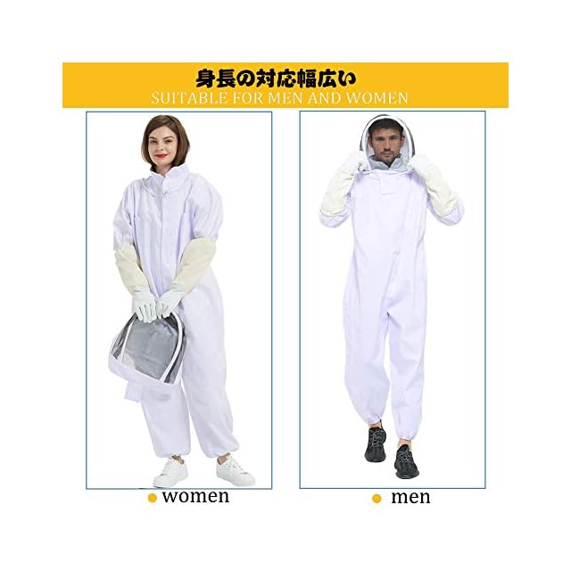 【こだわり】■フェイスネット:フェイス下のチャックがあり、服を着たまま顔が出せますし、途中での飲食も容易で便利です ■手首・足元をゴムでしっかりガードしており、虫や蜂の侵入を防ぎます。 ■顔面部分はメッシュ生地、ほかの部分は通気性が良く夏場の作業も快適です。 ■ウエスト部分には便利なポケットがあり、さまざまなアイテムが収納できます。 ■脱着がしやすくて便利です。