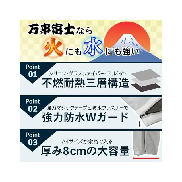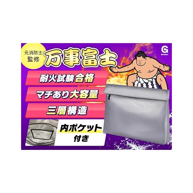 Gooder 万事富士 【内ポケット付】 耐火バッグ 【元消防士/防災士監修】 日本国内検査 38*27*8大容量 耐火金庫 防火袋 耐熱袋 防水袋 防災バッグ 貴重品ボックス 貴重品入れ 家庭用 オフィス | つむぎ屋
