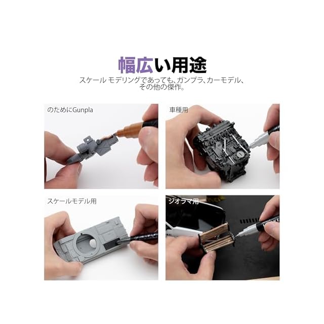 幅広い用途:スケールモデル、模型ロボットです、カーモデル、その他のクリエイティブな作品に取り組む際、これらのマーカーはどんなプロジェクトにも対応できる多機能なツールです。各マーカーには色を示すキャップとラベルが付いており、効率を高め、毎回正しい色を選ぶことができます。