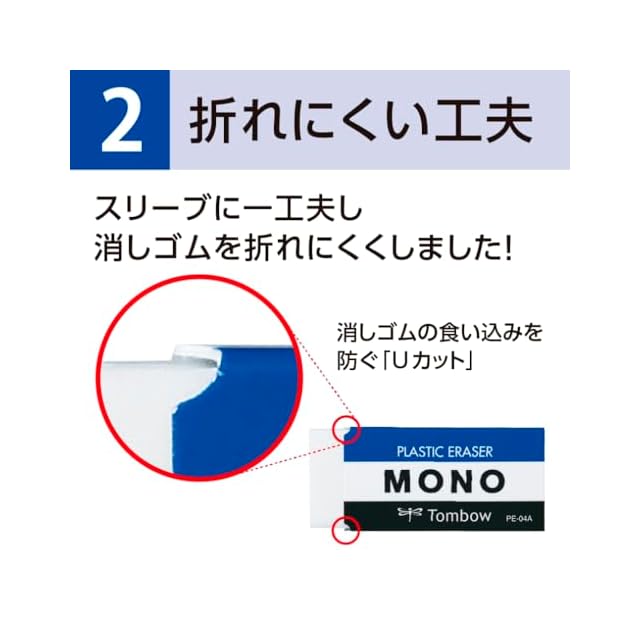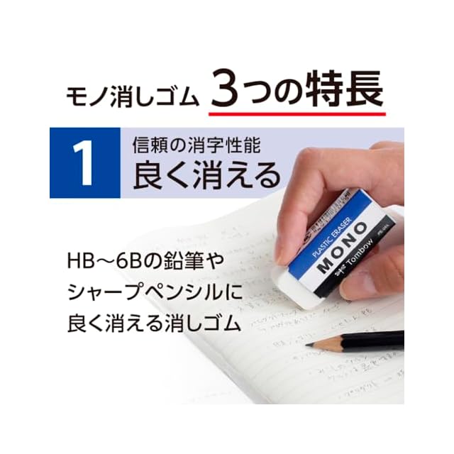 【特長】優れた消字性能と消し心地で、鉛筆・シャープペンの筆記線をきれいに消去できる