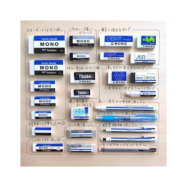 【MONO消しゴム】1969年誕生の高品質で信頼のブランドの消しゴム/青白黒のストライプのデザイン