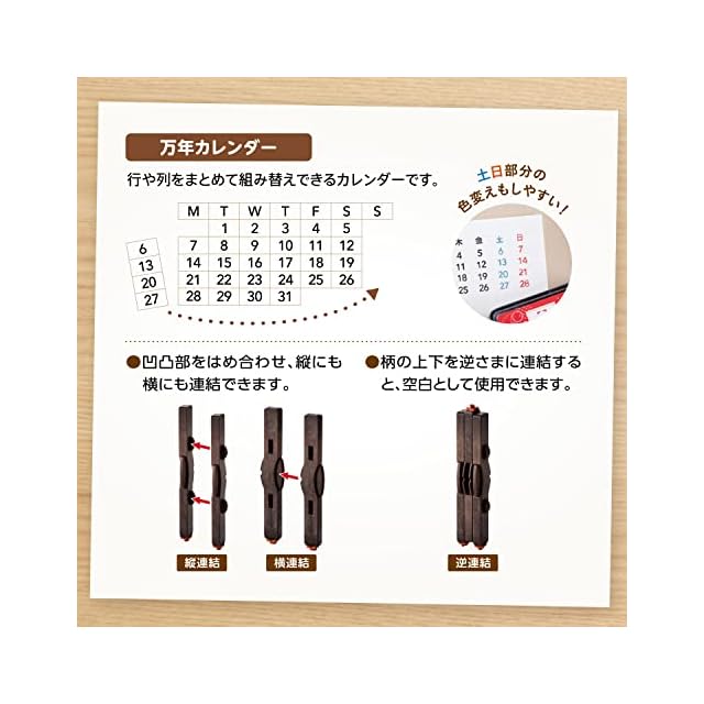 【仕様1】柄の凹凸部をはめ合わせ、縦にも横にも連結できます。 【仕様2】柄の上下を逆さまに連結すると、空白として使用できます。