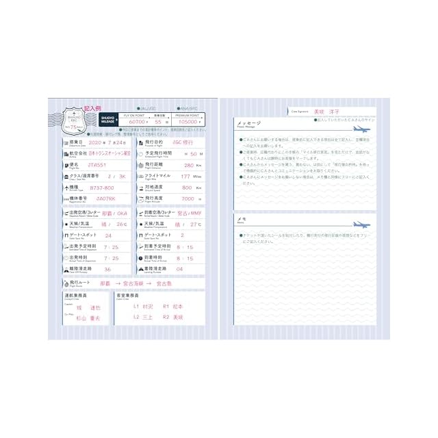 この「マイル修行宣言手帳」は、一般、上級会員、マイル修行僧、ステイタス修行僧の皆様に幅広くご利用頂けるフライトログブックです。