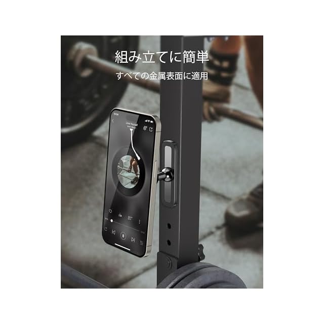 【超強い磁力】6個のN52強力マグネットで、平らな金属面にしっかり固定でき、落下したりすることなし。ジムやキッチンなどの様々な場所で大活躍。手を使わず、動画撮影や視聴がスム一ズに!(⚠注:鉄製の表面にのみ対応。アルミ合金、鋼、ステンレスなどには対応していません。)