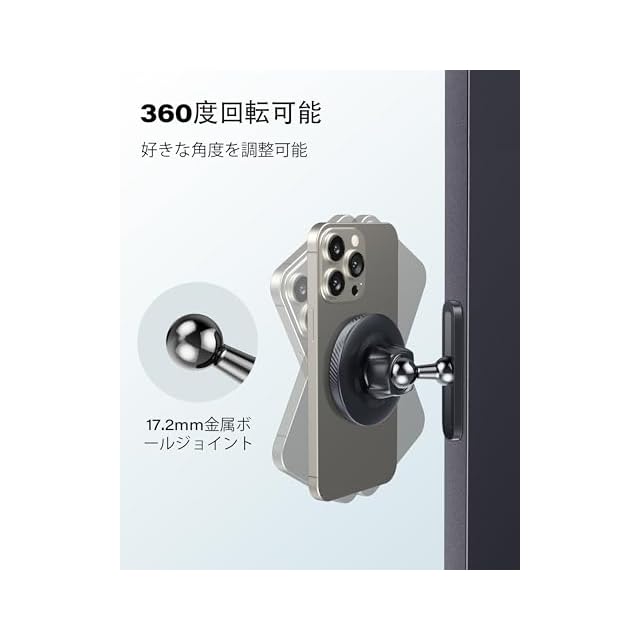 商品名:APPS2CAR スマホホルダー マグネット式 両面強力磁石 MagSafe対応 360度調節可能 冷蔵庫/フィットネス器具などの金属面に取り付け簡単 片手操作 全機種に対応