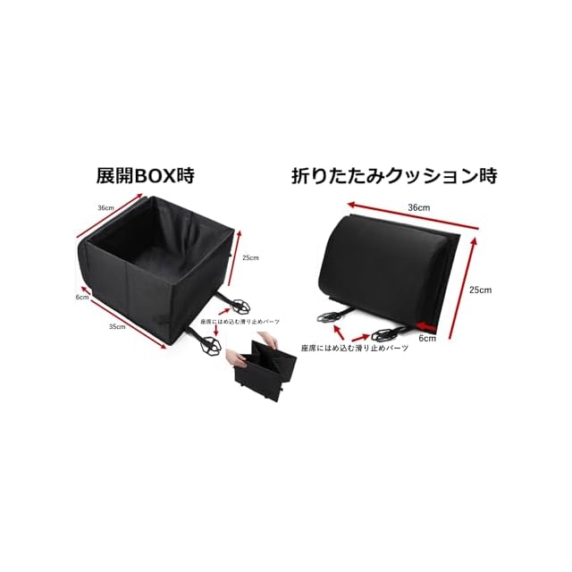 Kiryuize 車の座席で使える畳める2WAY 収納&ボックスクッション【 荷物の転落防止 折りたためる収納ボックス&クッション】ランバーサポート 車の座席シートで使える 2WAY 収納BOX&クッション【★多車種対応 フリーサイズ】 | つむぎ屋