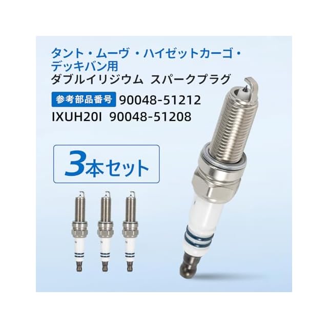 商品名:ダブルイリジウム スパークプラグ 3本セット タント L375S L385S ムーヴ LA100S ハイゼットカーゴ デッキバン S321V S321W S331V S331W用 参考部品番号:IXUH20I 90048-51208 90048-51212