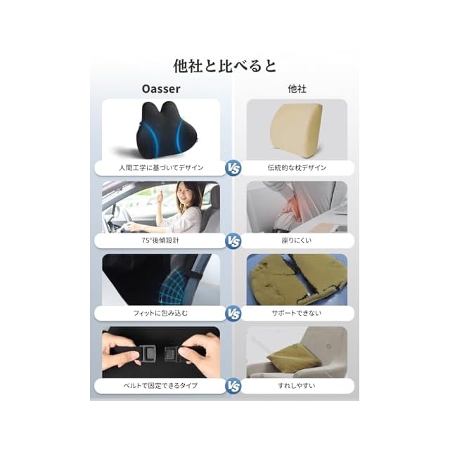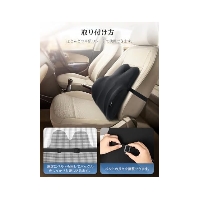 商品名:Oasser 腰 クッション ランバーサポート 車 シートクッション 腰当て 長距離運転 オフィス 椅子 家庭用 固定バンド付き 車腰痛対策