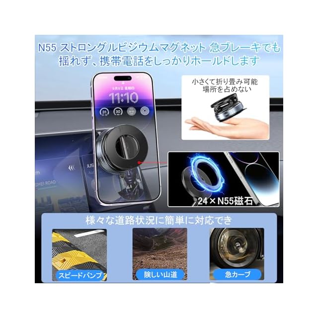 商品名:スマホホルダー 車 マグネット【2025超強磁力新登場】 真空吸盤 車 スマホスタンド Mag-safe 車載 安定性 高級合金素材 車載スマホホルダー 360°回転 多角度自由調節 片手操作 1秒で着脱 折りたたみ式 スマホ車載ホルダー iPhone&Android多機種と多車種が対応