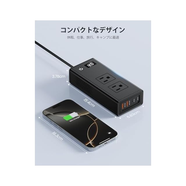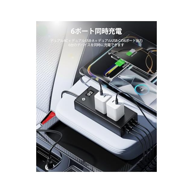 【緊急時に便利】シガーソケットは携帯電話と同じサイズ(15.4x6.8x3.9cm、0.3kg)で、USB-A(36W)、USB-C(20W)、110V ACジャックを備えています。キャンプや旅行中、自然災害時、突然の停電時などに電子機器を急速充電するために使用できます。