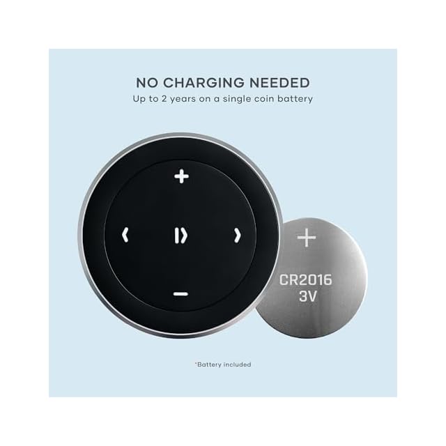 長寿命バッテリー – 交換可能なCR2016コイン型電池を搭載したメディアボタンは、最小限のメンテナンスで長期間ご使用いただけます。自動スリープ機能により電力を節約し、交換が必要になるまで最大2年間使用できます。電池は付属しています。