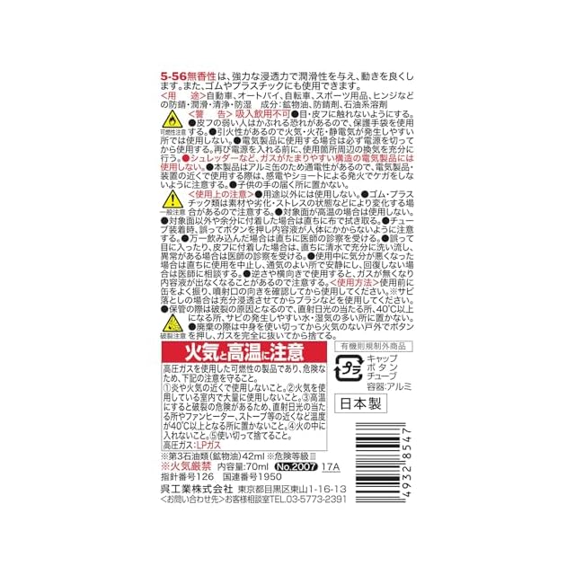 商品名:KURE(呉工業) 5-56 無香性 70ml 防錆・潤滑剤 2007