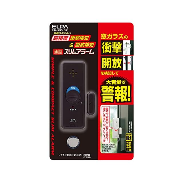 商品名:エルパ (ELPA) 薄型アラーム衝撃&開放 防犯 衝動+マグネット検知式 ブラウン ASA-W13(BR)